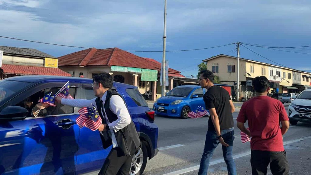 大马民主阵线(MUDA)配合国庆月联合志愿者在哥打峇鲁市内举行了国旗派发活动。